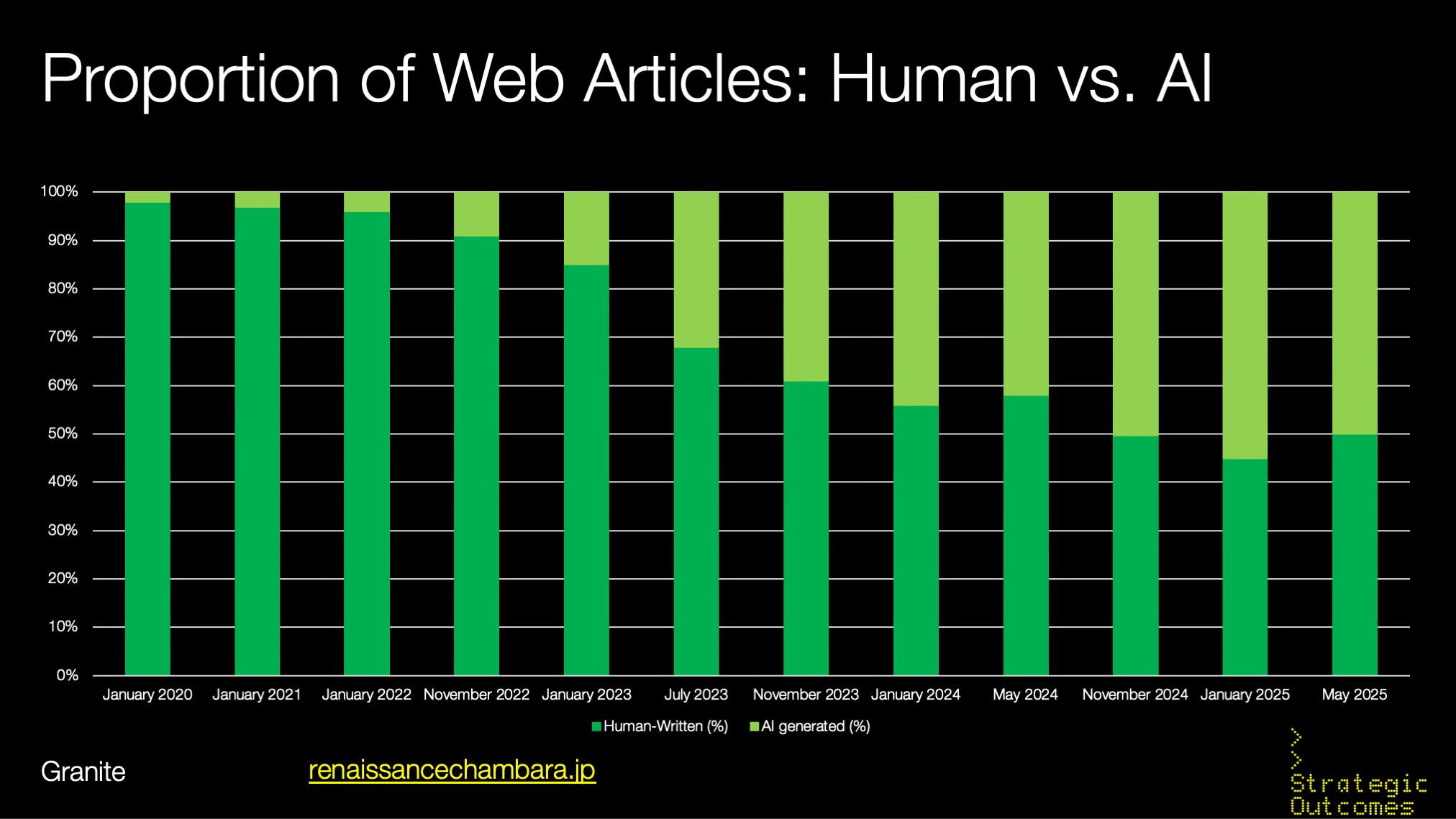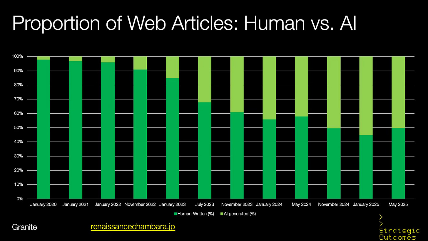 Already we can see the dot LLM era playing out on social media as over half of content is estimated to be produced with generative AI.
