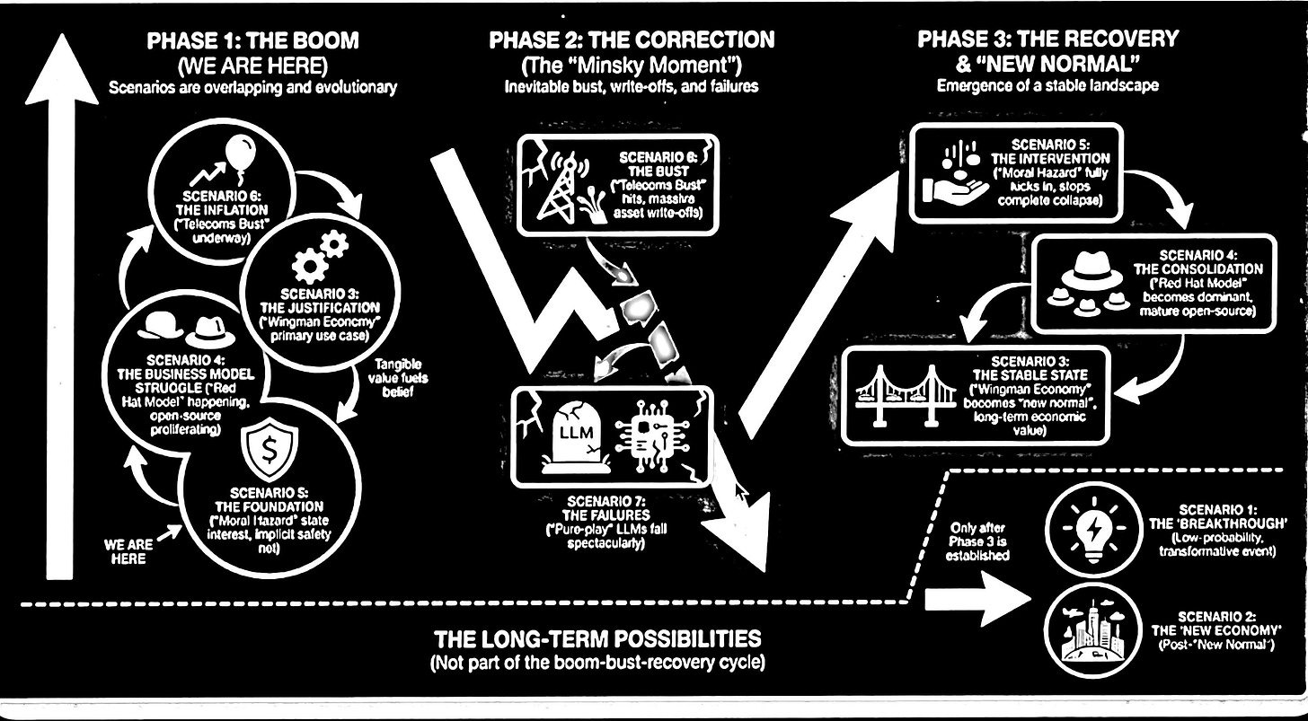 The “dot LLM era” represents a pivotal moment in technological history, drawing striking parallels to the dot-com bubble of the late 1990s. This period is defined by a massive influx of capital into Large Language Models (LLMs) and artificial intelligence infrastructure, which represents clear analogues to the dot-com era “three bubbles” framework: online businesses, open-source ventures, and telecommunications (which represents closest analogue to the current dot LLM era).